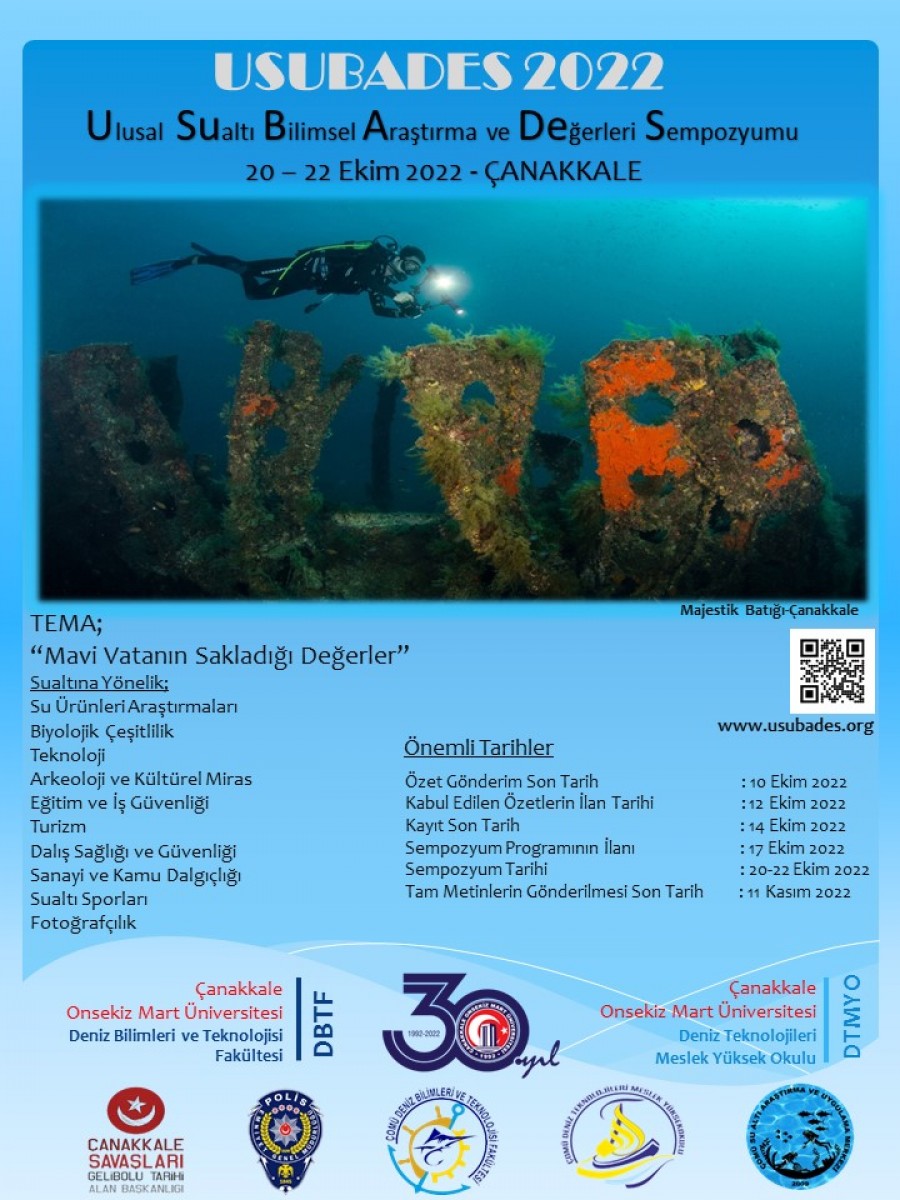 Ulusal Sualtı Bilimsel Araştırma ve Değerleri Sempozyumu (USUBADES-2022) Başvuru Tarihi 10/10/2022 Uzatılmıştır